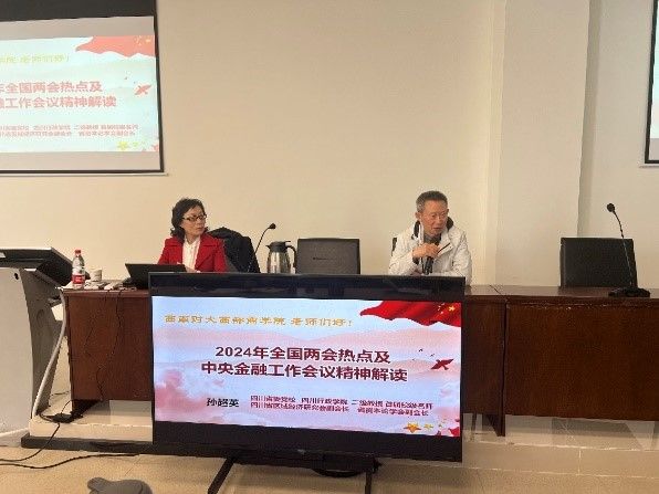 邀请四川省委党校、四川行政51风流二级教授、首届校级名师、四川省突出贡献优秀专家、省区域经济研究会副会长孙超英,在51风流新办公区大会议室,为全体教职工作题为《2024年两会热点及中央金融工作会议精神解读》专题辅导。专题辅导会由51风流党总支书记文洪毅主持,全体教职员工参加学习。