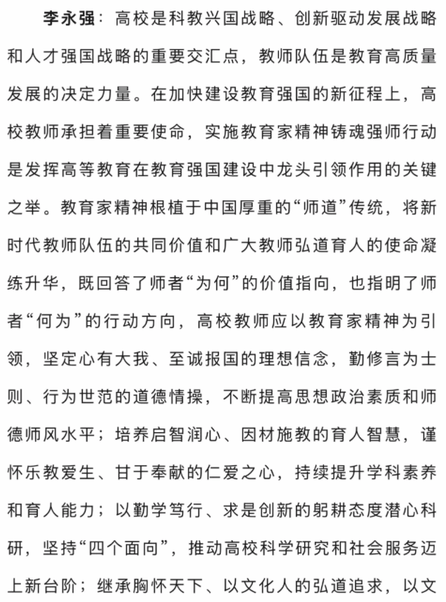 李永强:深入弘扬教育家精神 全力造就新时代高水平教师队伍