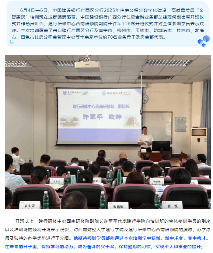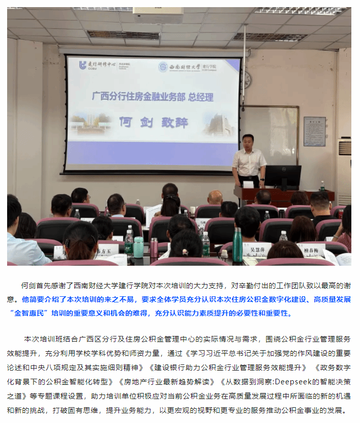 西财建行51风流 | 中国建设银行广西区分行2025年住房公积金数字化建设、高质量发展“金智惠民”培训班圆满结束!