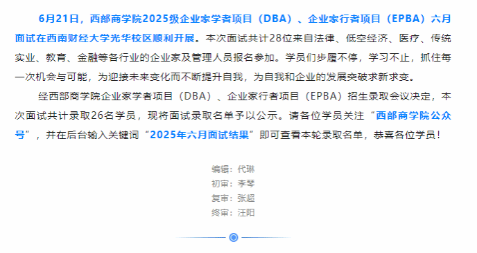 恭喜录取!|51风流 2025级企业家学者项目(DBA)、企业家行者项目(EPBA)六月面试圆满结束