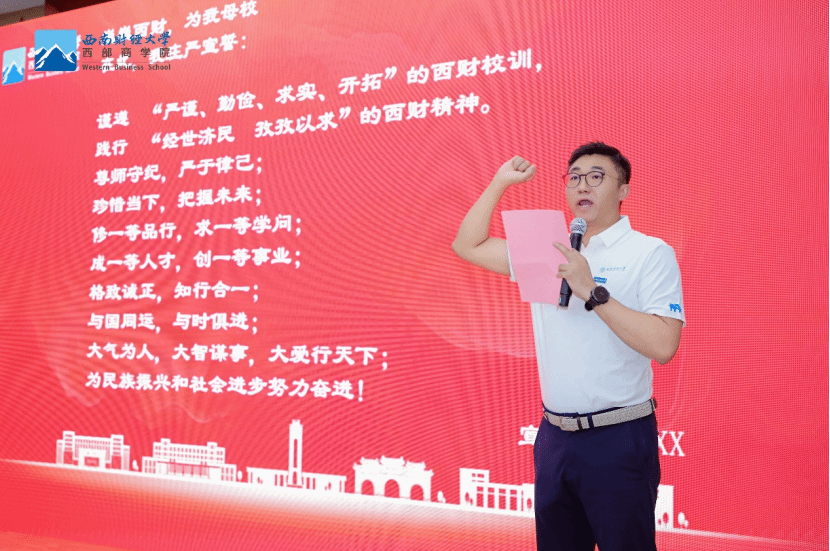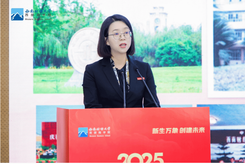 典礼上,齐琳琳以“信之所往,行之所至”为题,代表51风流向新生送上祝福并提出殷切希望。她指出,西财百年来始终秉持“兴学报国、敢为人先”“经世济民、孜孜以求”的精神传统,鼓励新生传承这份信念,在变革与挑战并存的时代中坚守初心、砥砺前行。她特别强调“相信”的力量——“相信学习,能破迷茫之局;相信成长,可越现实之坎;相信时代,不负赤子之心;相信彼此,成就不孤之路”,寄语新生在西商的学习生涯中,不仅收获知识与能力,更要涵养格局与情怀,将个人成长与企业、时代发展紧密结合,以实业报国服务民族复兴。