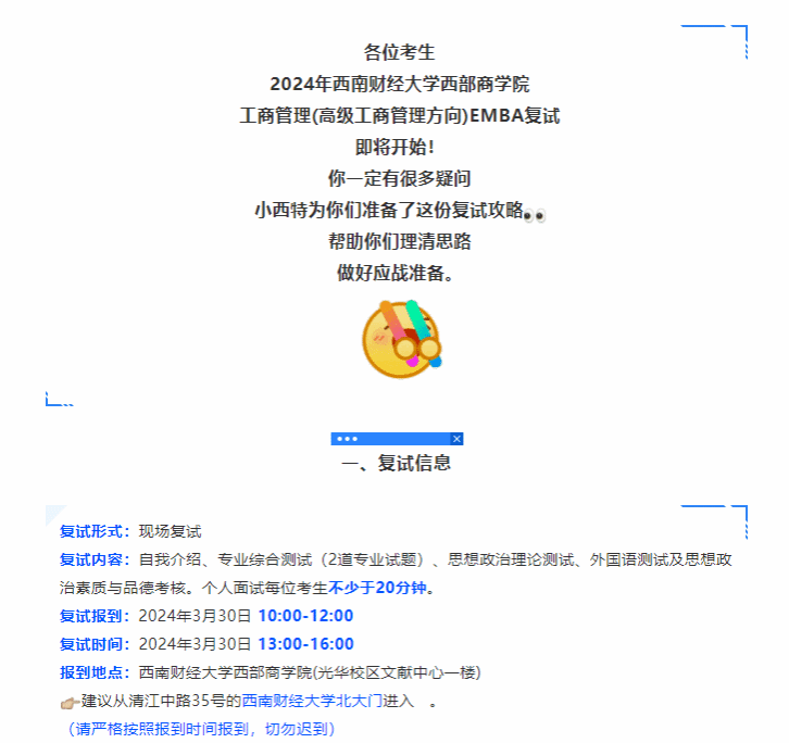 复试必看!快来查收你的西财EMBA复试指引