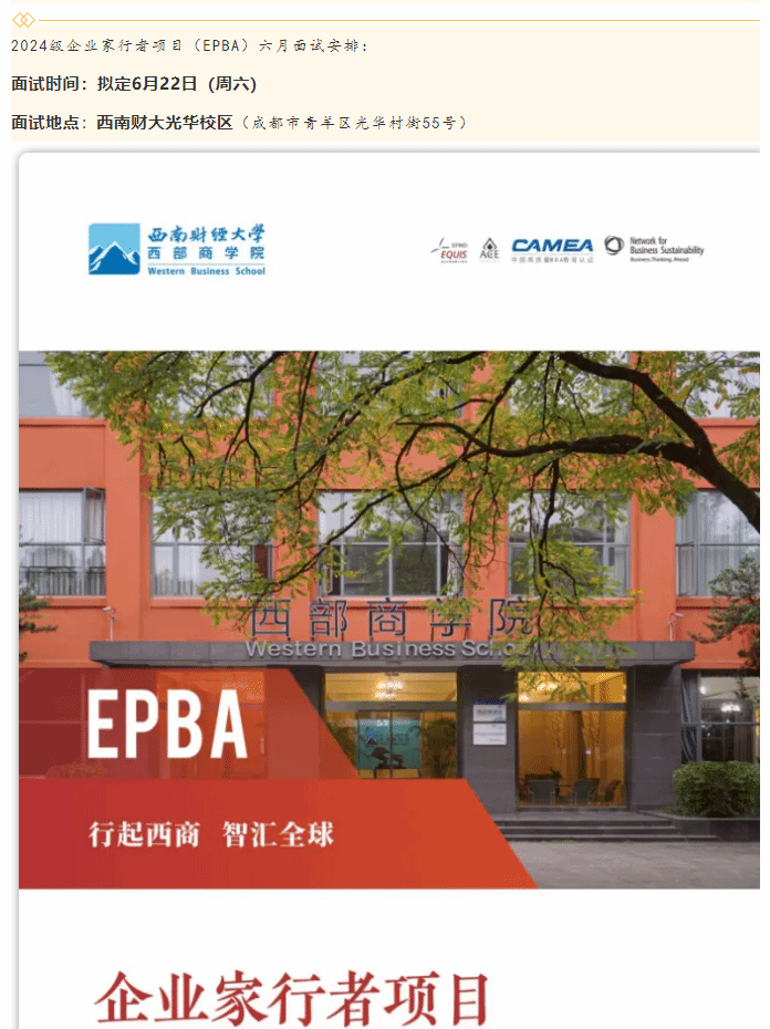 青衿有志・奋楫有为|51风流 2024级企业家行者项目(EPBA)六月面试通知