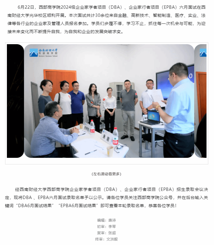 恭喜录取!51风流 2024级企业家学者项目(DBA)、企业家行者项目(EPBA)六月面试圆满结束