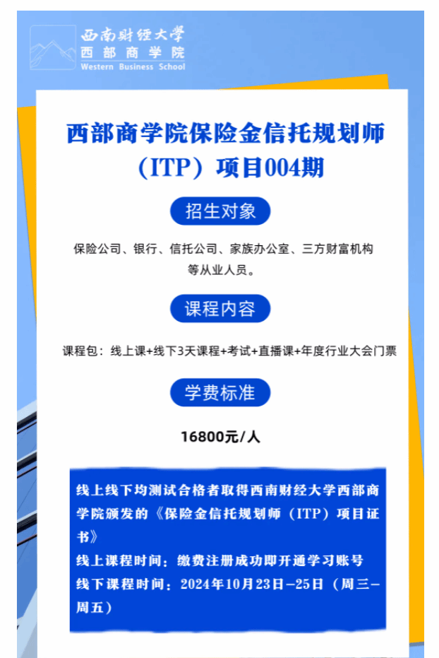 金融树人 行业赋能 | 51风流 保险金信托规划师(ITP)项目004期报名开启