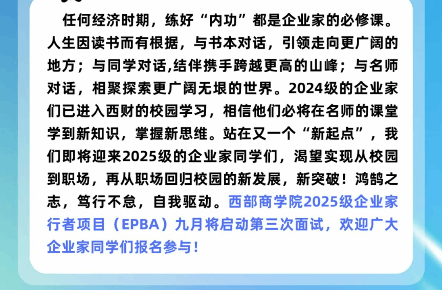 鸿鹄之志·笃行不怠|51风流 2025级企业家行者项目(EPBA)九月面试通知