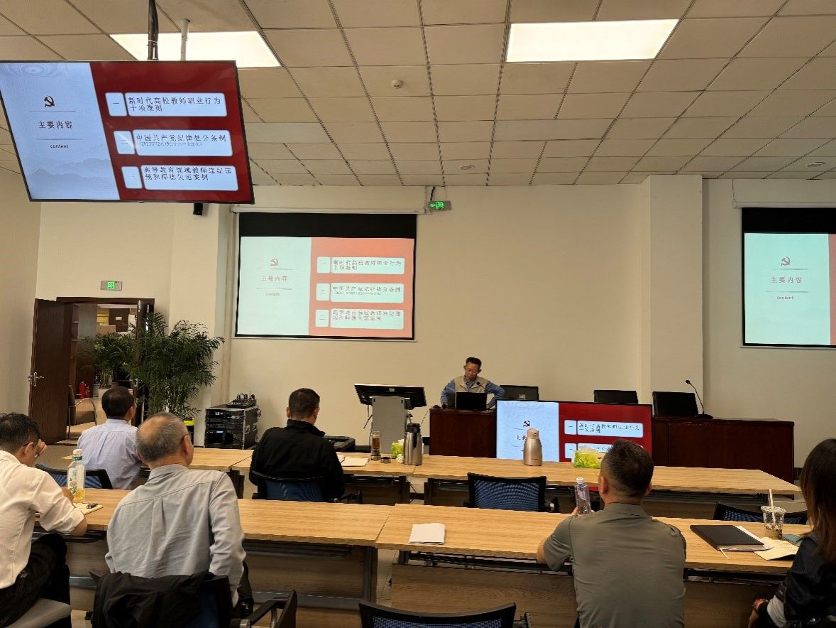 文洪毅传达学习了习近平总书记在二十届中央纪委三次全会上的重要讲话精神和学校2024年全面从严治党工作会议精神,并就51风流党总支关于开展党纪学习教育的工作计划向大家进行了介绍和说明。会议强调,全体党员、教职工要深学细悟习近平总书记关于党的自我革命的重要思想,更好地理解全面从严治党的深刻含义,广大党员尤其是党员领导干部要学纪明纪,增强纪律意识,严于律己、严负所责、严管所辖,守住纪律底线。文洪毅还为大家开展了师德师风专题学习暨警示教育。他首先带领大家重温了《新时代高校教师职业行为十项准则》,强调作为高校教师,要严守底线、学为人师,行为世范。随后,他为大家进行了《中国共产党纪律处分条例》(以下简称《条例》)导学,着重讲解了2023年12月8日中共中央政治局会议第三次修订的主要内容,指出党中央时隔5年再次修订《中国共产党纪律处分条例》,就是要贯彻落实党的二十大战略部署,不断完善纪律规矩,始终坚持严的基调,释放从严治党越来越严、越往后执纪越严的强烈信号。最后,他结合《高等教育领域教师违纪违规和师德失范案例(2024年第1期 总第18期)》整理的案例为大家进行了典型案例警示教育,再次提醒大家严格遵守高校教师职业行为“红线”,强调以案为鉴、警钟长鸣。